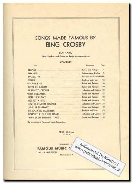 Songs made Famous by Bing Crosby