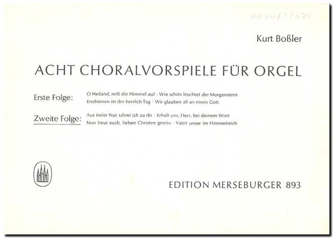 Acht Choralvorspiele fur Orgel Zweite Folge